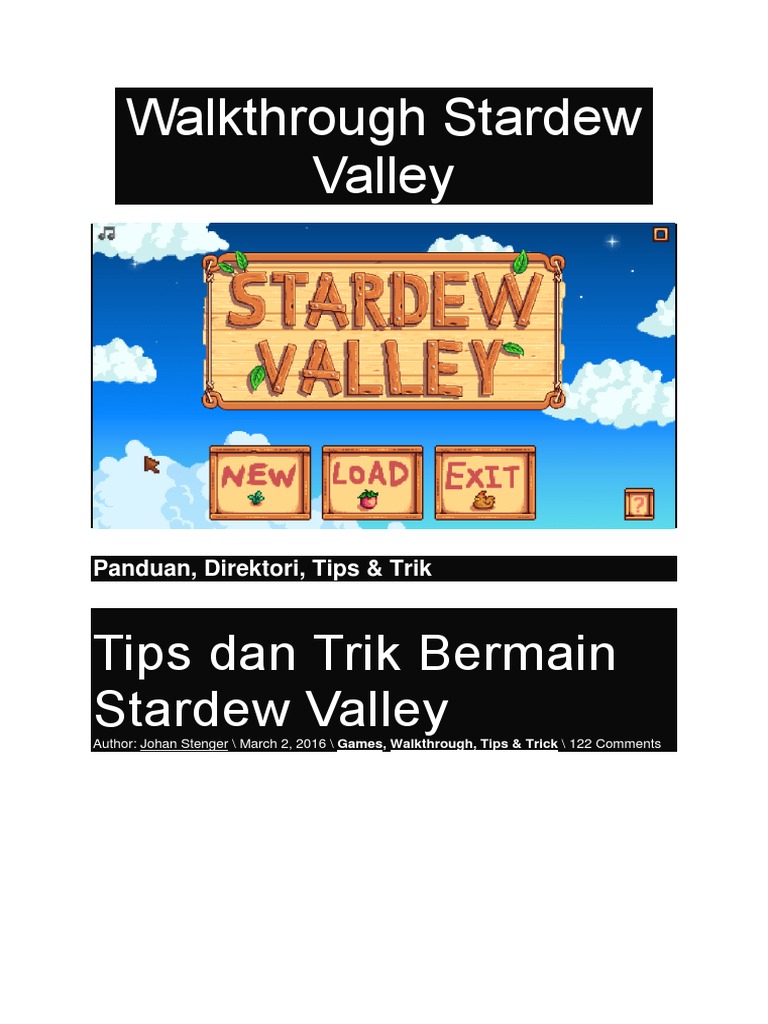Stardew valley merupakan game simulasi pertanian yang di kembangkan oleh concernedape. Release date 26 februari 2016. Stardew valley adalah tentang mengambil masa anda, menikmati kehidupan, dan merendam kesederhanaan gaya hidup pertanian yang indah ini. Berikut adalah senarai cepat tanaman yang paling menguntungkan untuk ditanam untuk setiap musim di stardew valley. Stardew valley memiliki banyak jenis mineral yang bisa kamu dapatkan. Di tahun pertama sangat disarankan untuk menanam semua macam benih yang tersedia nah itulah berbagai macam tips bercocok tanam di game stardew valley yang bisa kami bagikan kali ini. Salah satu fitur di stardew valley yang paling menarik adalah fitur combating monster. Tidak hanya dapat menyediakan tanaman musiman sobat. Pada saat nambang ada monster yang harus dilawan. Gunakanlah bahasa yang sopan agar semua orang nyaman membacanya,terimakasih atas perhatiannya. Di musim dingin kalian tidak bisa menanam bibit apapaun, tetapi admin punya solusi agar kalian tetap untung di musim dingin, yaitu Relationship dengan warga stardew valley merupakan hal yang penting agar anda dapat menyelesaikan beberapa quest dan beberapa item dalam stardew valley akan jauh lebih berguna jika di craft. Developernya, concernedape, adalah penggemar berat harvest moon yang berhasil seorang diri membuat harvest moon versinya sendiri.